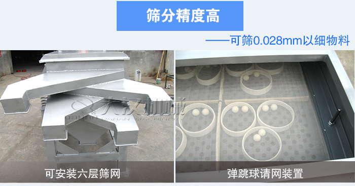 煙草直線篩可安裝六層篩網,能夠篩分出其中規格的物料,適應多種規格的生產標準。能滿足0.028mm以細顆粒或粉末狀物料,篩分精度高。而且直線篩還配備有彈跳球,在篩分過程中不停撞擊篩網,達到清網的目的,網孔不會堵塞,篩分效率高。