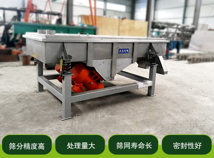 直線篩沙機篩分精度高、處理量大、結構簡單、耗能少、噪音低、篩網使用壽命長、密封性好、無粉塵溢散、維修方便、可用于流水線生產中的自動化作業。