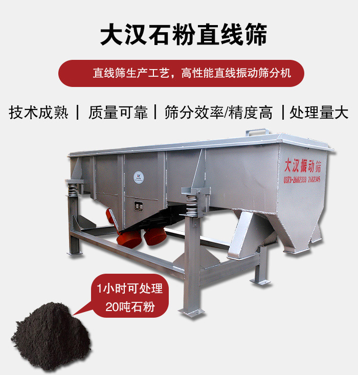 石粉直線振動(dòng)篩是大漢機(jī)械針對(duì)農(nóng)作物篩分行業(yè)研究的直線篩分設(shè)備。直線振動(dòng)篩是振動(dòng)篩的一種,依靠振動(dòng)電機(jī)作為振動(dòng)源,使篩網(wǎng)上的所篩物料在被拋起的同時(shí)向前做直線運(yùn)動(dòng)。