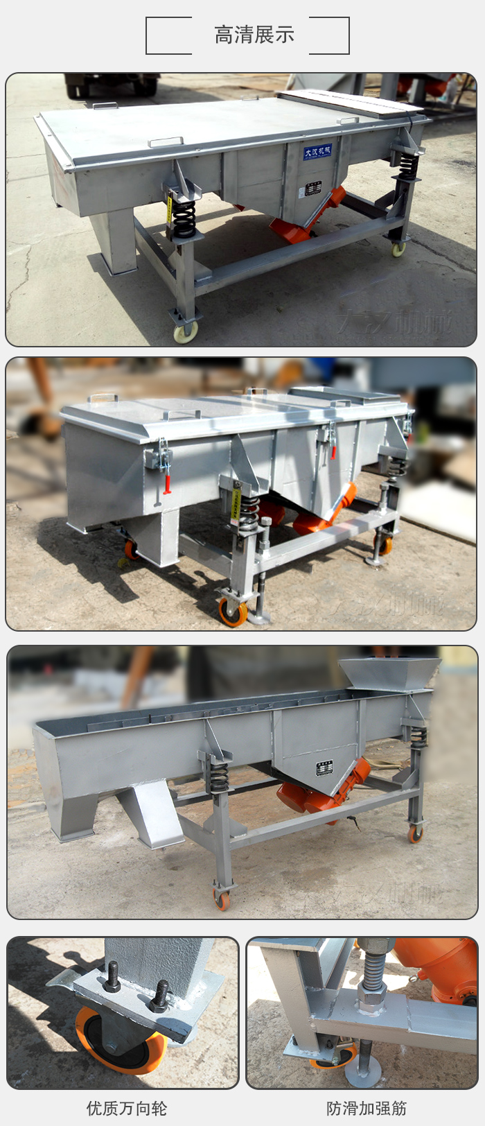 產(chǎn)品摘要:可移動直線篩又叫做可移動式直線篩,支腿加萬向輪及支架,可自由移動可隨意升降,方便客戶根據(jù)現(xiàn)場需要隨時調(diào)節(jié)。